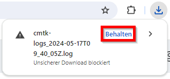 Um den Download abzuschließen, muss auf "Behalten" geklickt werden.