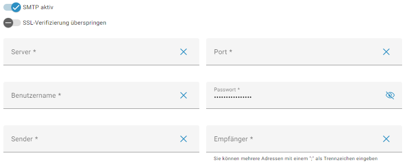 Sie können mehrere Adressen als Empfänger eingeben, indem Sie ein ";" als Trennzeichen verwenden