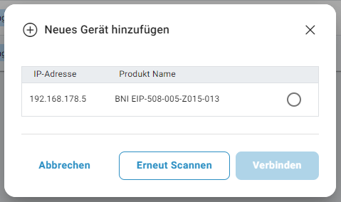 Klicken Sie auf Verbinden, um das CMTK mit dem IO-Link-Master zu verbinden; der IO-Link-Master erscheint unter dem CMTK.