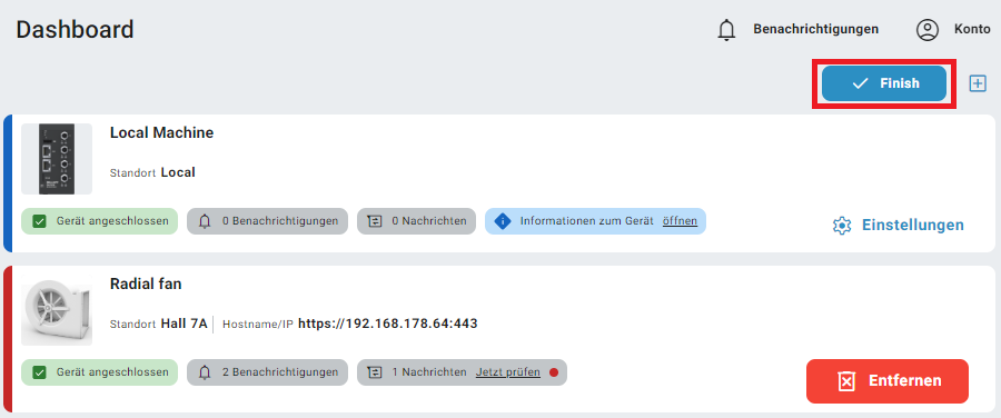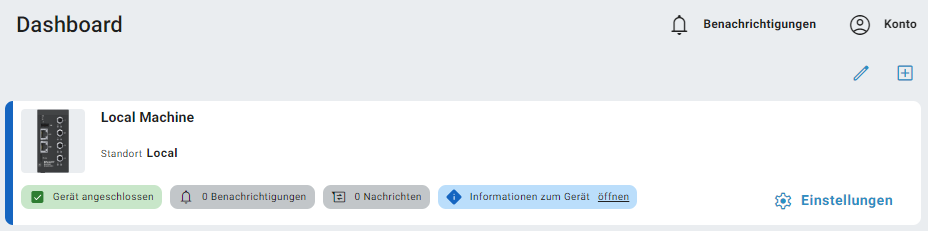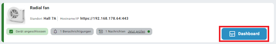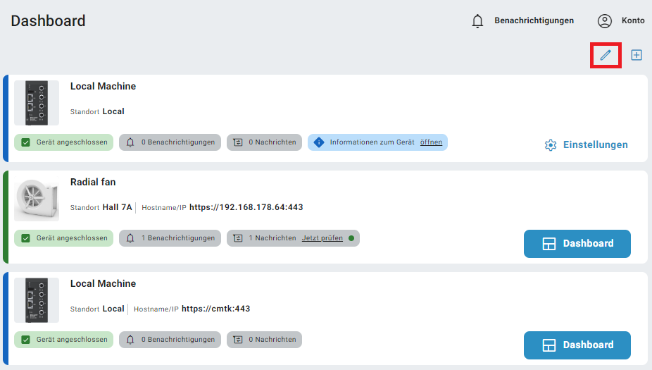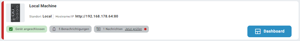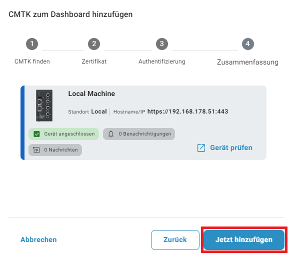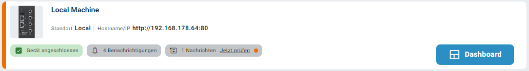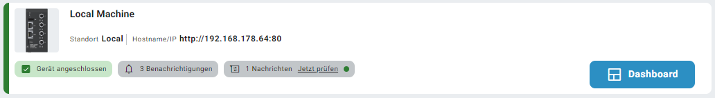 Jetzt wird das CMTK im Dashboard mit dem von Ihnen eingegebenen Hostnamen oder der IP-Adresse angezeigt.