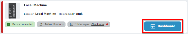 Device successfully added Now the CMTK shows up in the Dashboard with the hostname or ip address you entered.