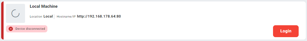 Error Login (red): This state occurs in case the connection is released from within the general settings of the node CMTK. It can be reconnected easily via the login button.