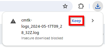 To complete the download, its necessary to klick on "Keep"