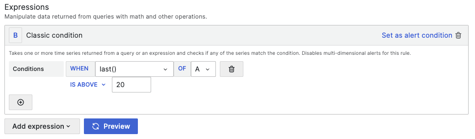 • "Is above": You can change it to another type of comparison and set the comparison value.