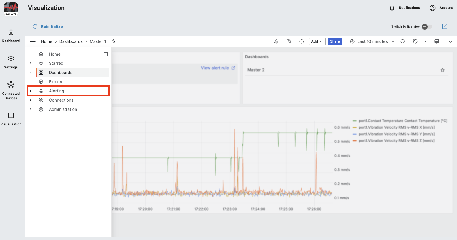 Alerts are based on Grafana. Here only the configuration of the Alerts is explanined. You can find detailed informations about Grafana in the Visualization manual.
