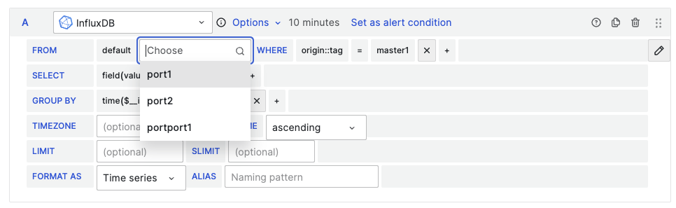 • Select "Time Range" to measure in, then insert desired "From" value, e.g. now-10s