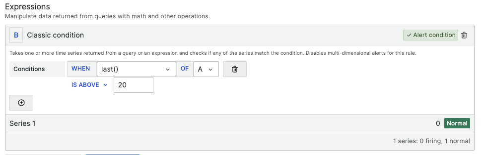 • "Pending": If you don't like to raise an alarm immediately, you can use it. It keeps the alarm in a pending state for a defined time before raising the alert.