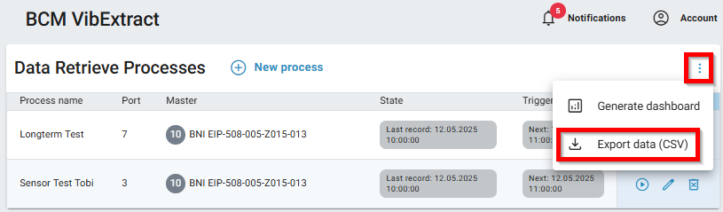 On this page, you can configure a process to get the raw data or FFT data from the advanced BCM sensors and visualize it in Grafana. To install the BCM VibExtract, download the APP and install it on the CMTK.