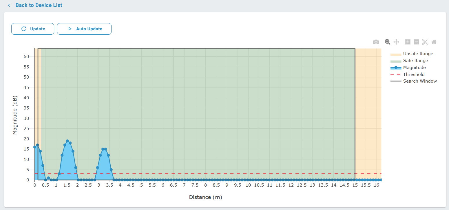 The Magnitude graph shows what the sensor detects. A higher magnitude means the target is more reflective at that distance.