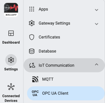 The client settings can then be found under Settings > IoT Communication > OPC UA Client