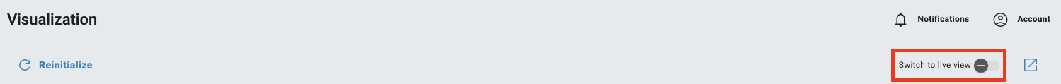 In the top menu of the visualization page there is a toggle button Switch to live view.