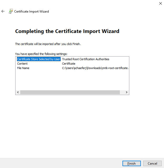 Import certificate -
