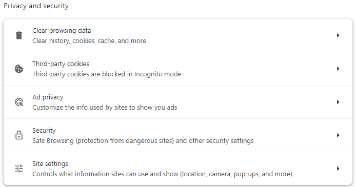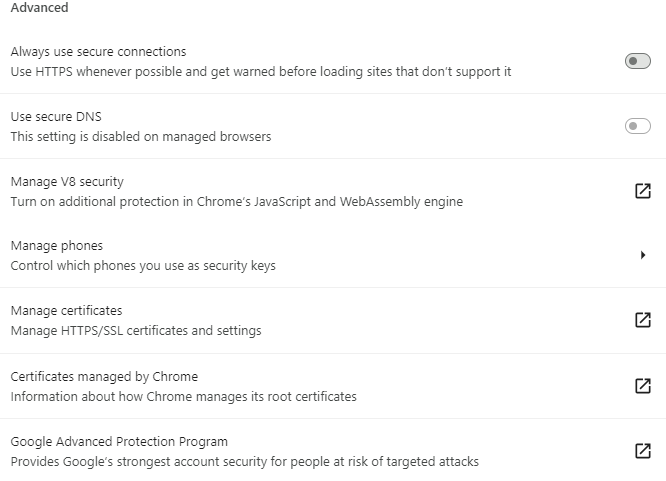 Browser settings -