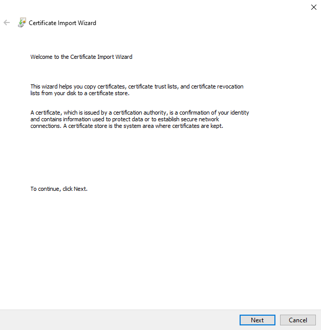 Import certificate wizard -