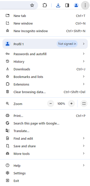 In this example, Chrome browser on Windows 10 is usend. If you are using a different browser or operating system, the exact steps can differ.