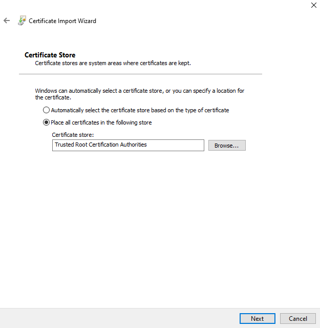 select certificate store -