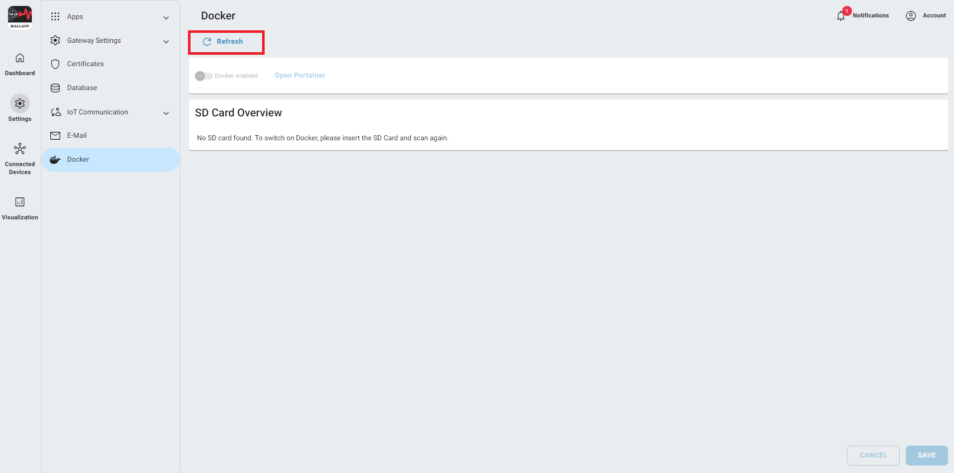 After formatting the SD Card, you can enable Docker by clicking on the Docker enabled button.