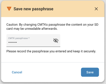 Click on Change passphrase and enter the right passphrase for the SD Card.