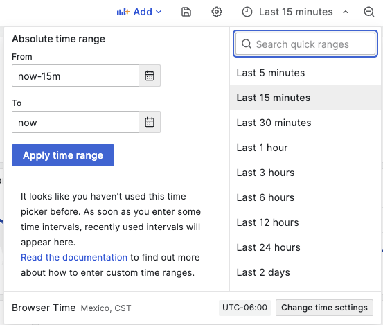 - Click in the Time Range Menu